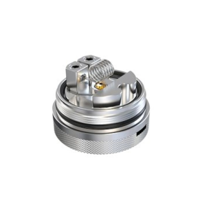 Ce RTA repose sur un plateau single coil clair et accessible, facilitant l’installation des résistances, même pour les montages fins. Le remplissage par le haut simplifie l’usage au quotidien, tandis que le système de contrôle du liquide, réglable via trois bagues dédiées, assure une alimentation stable. Ainsi, les risques de dry hit ou de fuite restent limités.