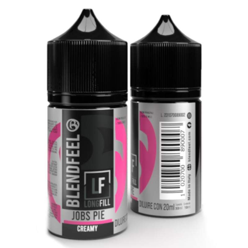 Ce concentré est un arôme DIY au format longfill 10+20. Le Concentré Jobs Pie de Blendfeel en 10 ml doit impérativement être dilué dans une base PG/VG avant utilisation. Son flacon de 30 ml contient 10 ml d’arôme à compléter avec 20 ml de base pour obtenir un e-liquide prêt à vaper.