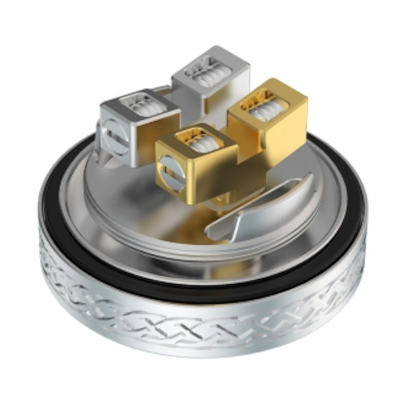 Le plateau du Dead Rabbit V2 repose sur une architecture à quatre posts, compatible avec des montages en simple coil comme en double coil. L’espace disponible facilite l’installation de résistances épaisses, même complexes. Le pôle positif plaqué or améliore la conductivité et assure une montée en chauffe réactive et homogène.