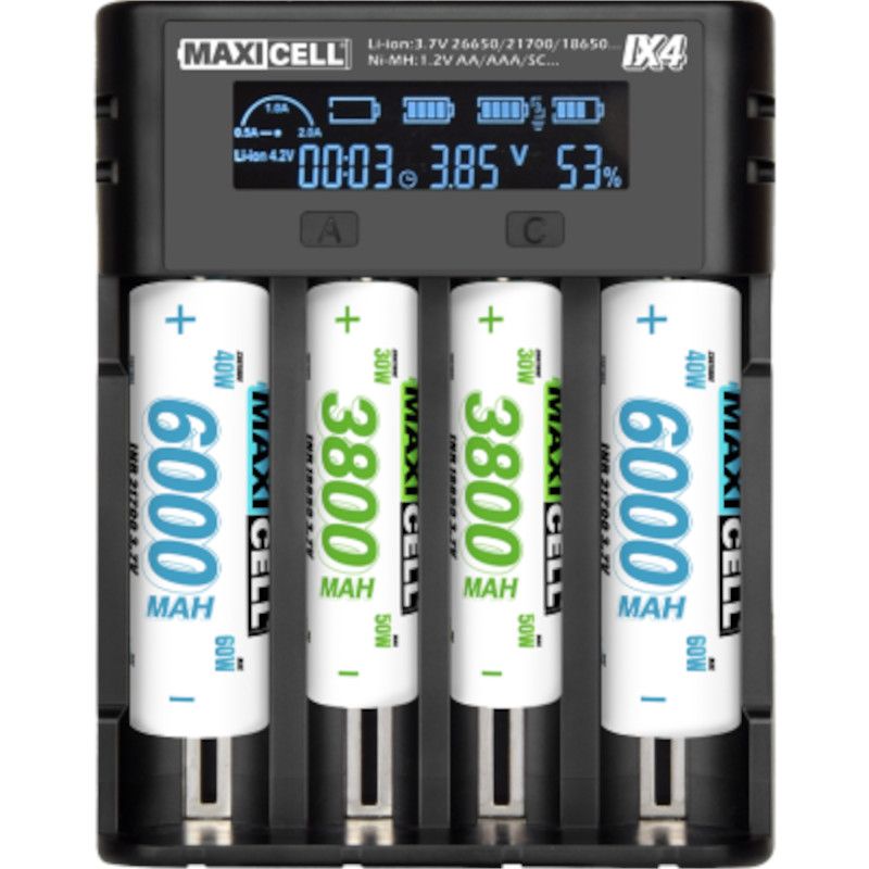 Le IX4 Chargeur Intelligent 4 Slots MAXICELL est un chargeur compact à quatre emplacements indépendants. Il accepte les accus Li-Ion ainsi que les piles NiMH et NiCd. Grâce à son écran TFT, le suivi reste clair et précis. Ainsi, il combine rapidité, compatibilité et sécurité.