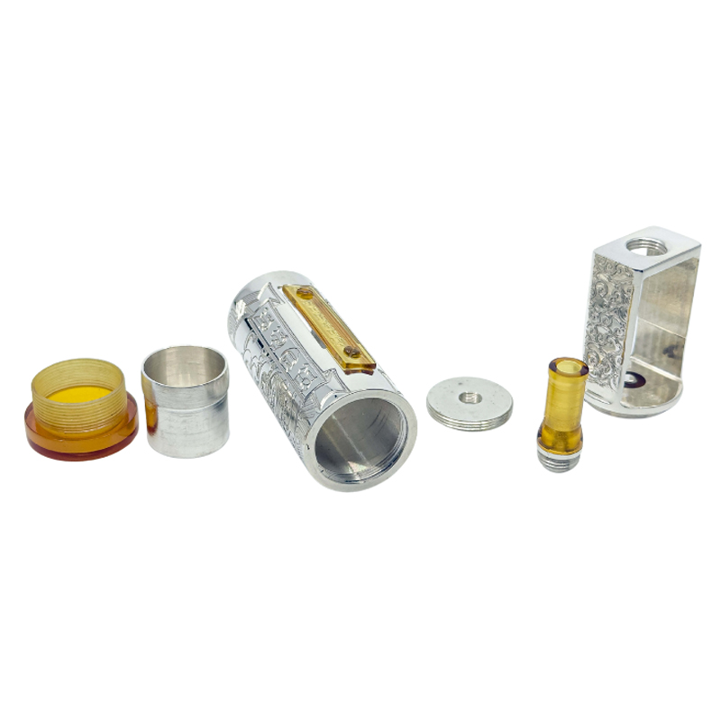 Mais ce qui élève véritablement ce mod au rang de pièce de collection, c’est son tube façonné en argent massif 99,5 % – un métal noble, rare et hautement conducteur, que l’on retrouve dans l’orfèvrerie de luxe ou les circuits électroniques de haute précision. Cette matière prestigieuse confère au Gorgon un éclat incomparable, une robustesse intemporelle, et une conductivité optimale, idéale pour les montages mécaniques les plus exigeants.