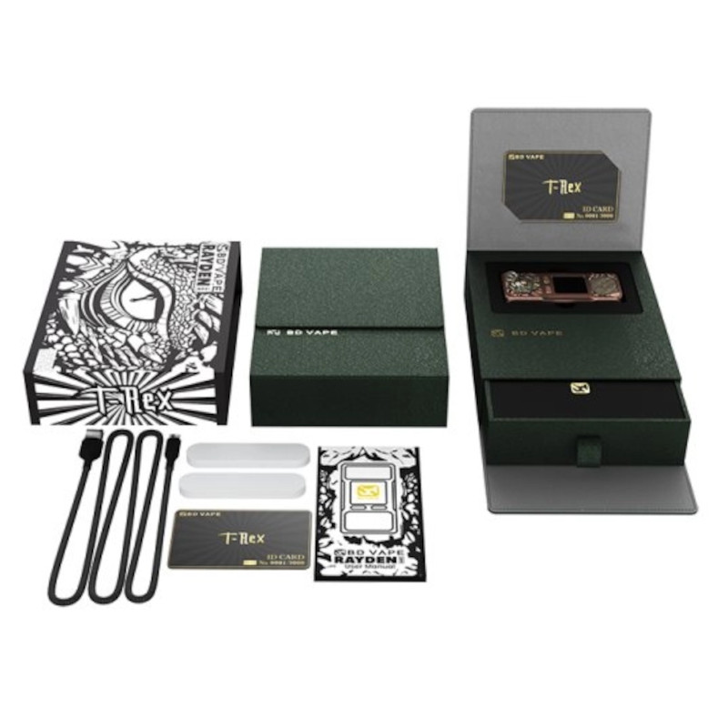 Le Mod Rayden 220 T-Rex Limited Edition BD Vape incarne une vision artistique et technologique rare dans l’univers de la vape. Cette édition exclusive transporte immédiatement l’utilisateur dans un univers jurassique puissant. Chaque pièce se distingue par un niveau de détail exceptionnel, pensé pour les vapoteurs adultes à la recherche d’un mod unique et performant.