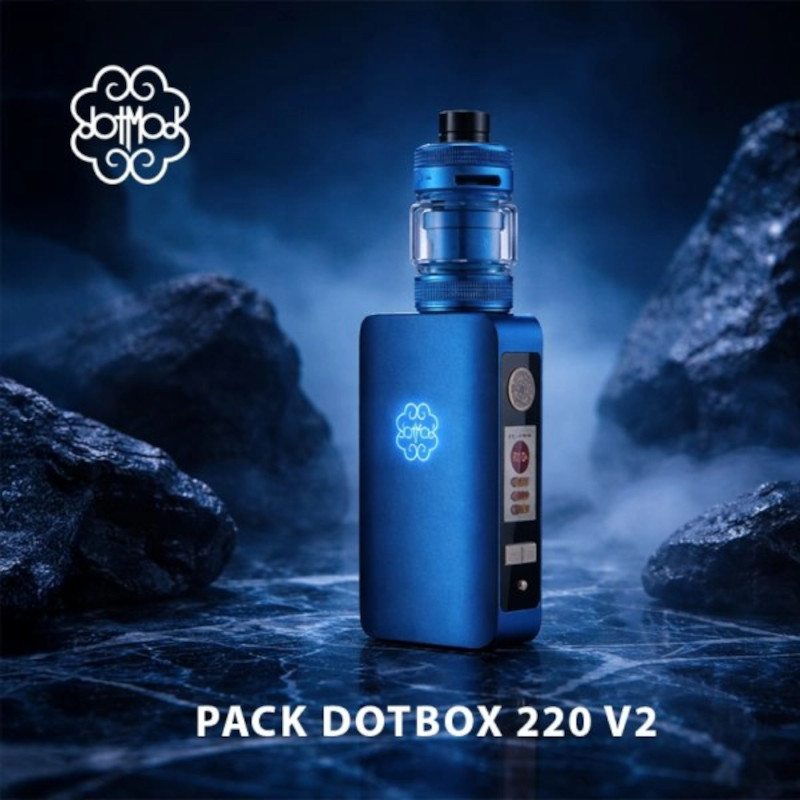 Dotmod revient avec le Pack DotMod 220 V2, un kit puissant au design moderne et élégant. Cette cigarette électronique fonctionne avec deux accus 18650 (non inclus). Elle délivre une puissance réglable de 5 à 220 watts.