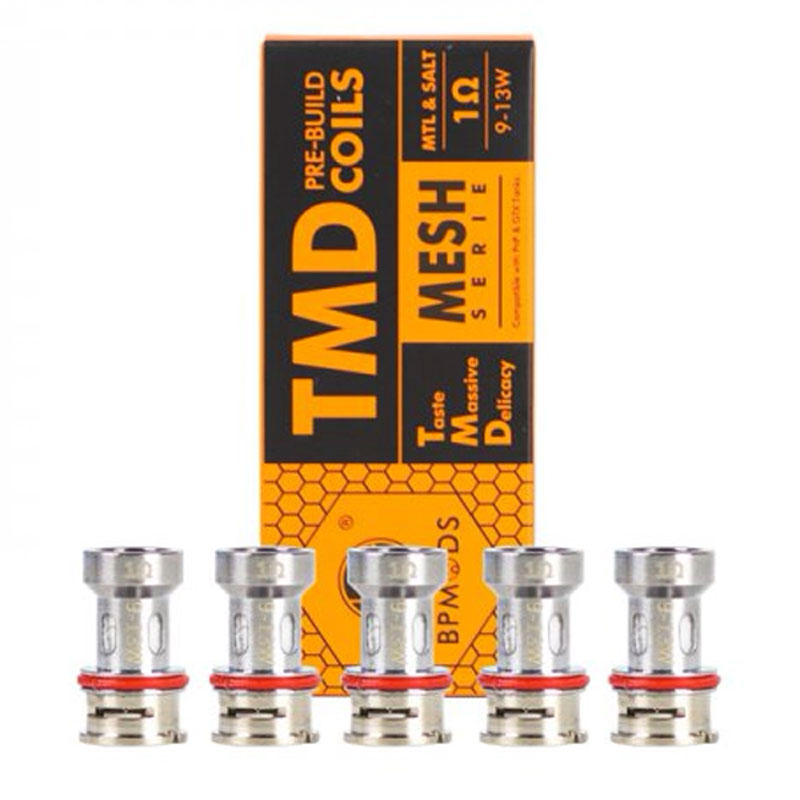 | Choix | TMD Mesh DL Coil 0.3 Ω, TMD Mesh RDL/MTL Coil 0.8 Ω, TMD MTL & Salt 1 Ω, TMD Pro MTL Coil 1.05 Ω, TMD Pro RDL Coil 0.55 Ω |